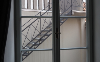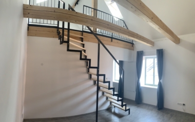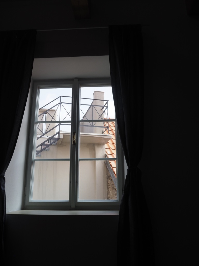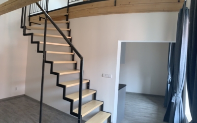 Byt je umístěn v prvním patře, je to atypický mezonetový ateliérový byt.